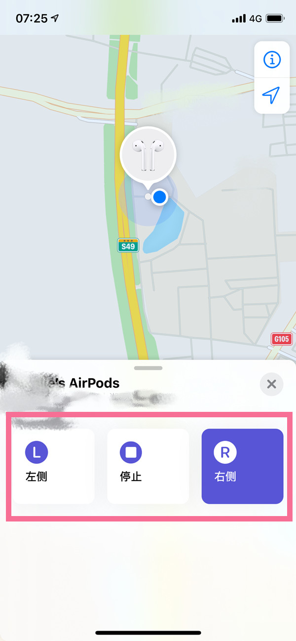 2、进入后,将您在地图上看到的那只耳机放入充电盒中。然后刷新地图并查找另一只耳机。