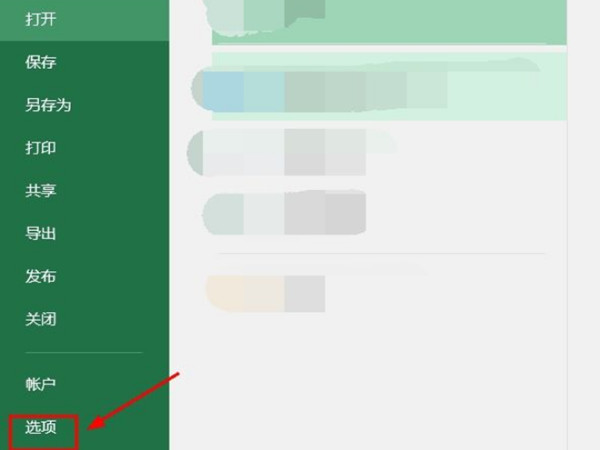 1、打开excel表格,点击上方工具栏中的文件,点击选项。