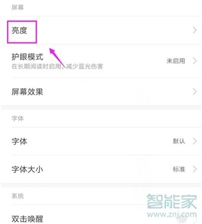3、在显示界面,我们选择【亮度】一栏,如图所示。