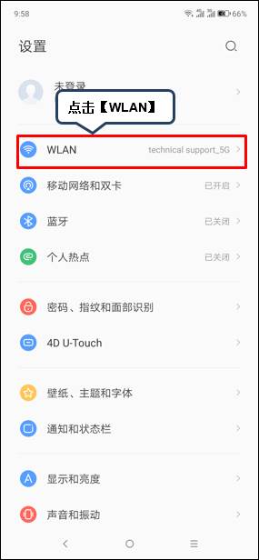 2、点击【WLAN】。