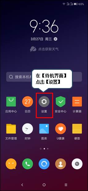 1、在【待机界面】点击【设置】。