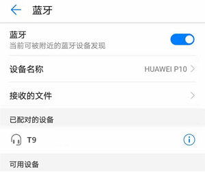 3.此时手机的蓝牙设备搜索列表上会出现索爱t9耳机的名字,如果没有,请尝试刷新蓝牙功能界面。在设备名称选项中选择“T9”,并按照手机上显示的说明步骤配对连接。