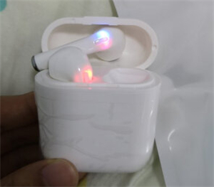 2.将恩科ew10耳机拿出充电盒,此时耳机上的指示灯红蓝灯光交替闪烁,进入配对状态。