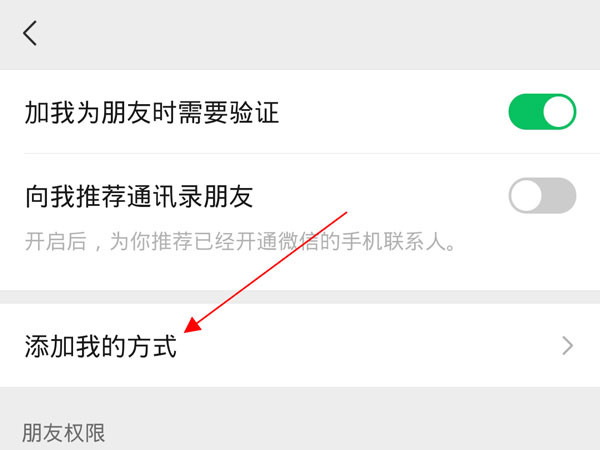 2、点击【朋友权限】,点击【添加我的方式】。