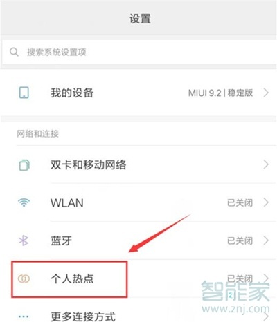 第二步:在设置界面,我们点击【个人热点】一项,如下图