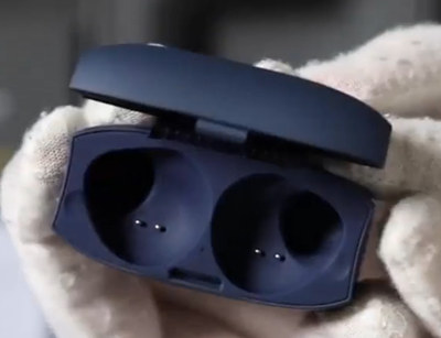 2.再看看捷波朗65t动感版耳机的充电盒,打开充电盒之后便可看见充电盒内有两个和耳机相对应的凹槽,凹槽内底部就是和耳机上金属圆片连接的触点。