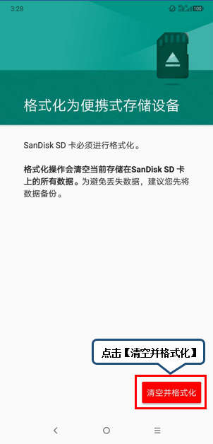 4、点击【清空并格式化】。