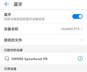 3.此时手机的蓝牙设备搜索列表上会出现万魔Spearhead VR电竞蓝牙耳机的名字,如果没有,请尝试刷新蓝牙功能界面。在设备名称选项中选择“1MORE Spearhead VR”,并按照手机上显示的说明步骤配对连接。