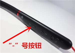 4.1MORE E1020BT耳机音乐音量过大时,可以按下“-”号按钮来减小音乐音量。