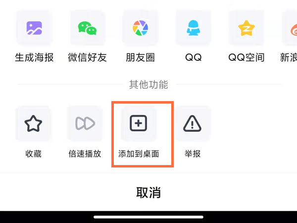 3、在播放页面点击右上角三个点,再点击添加到桌面即可。