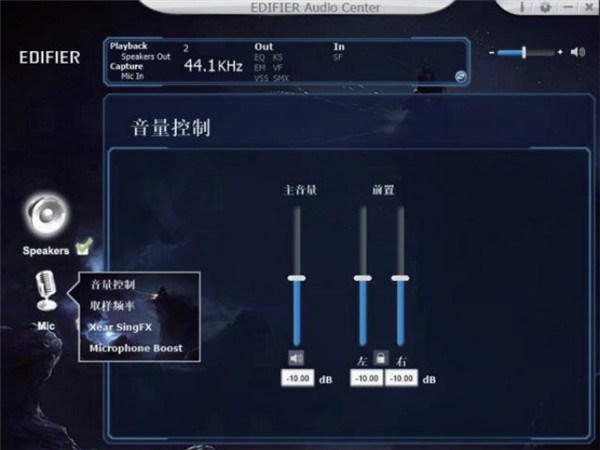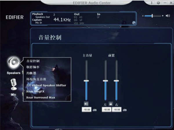 1.扬声器功能界面; 7.1声道,环境仿真音效,EQ调节等多种强大功能。