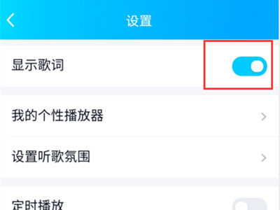 2、进入一起听歌设置页面后,将显示歌词右侧的开关开启即可显示桌面歌词。