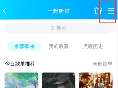 1、打开qq,进入一起听歌页面,点击右上角三横图标。