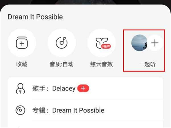 2、在弹出的页面点击一起听选项,邀请好友,等待好友加入即可。