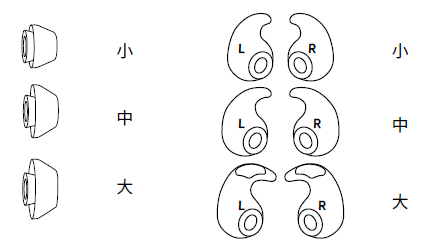 耳机配有三种耳胶和耳挂尺寸:大号、中号和小号。