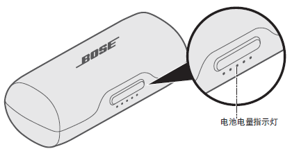 按下充电盒前侧的按钮,电池电量指示灯将点亮三秒。