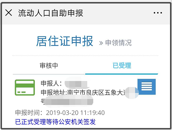 查询居住证申领审核进度: