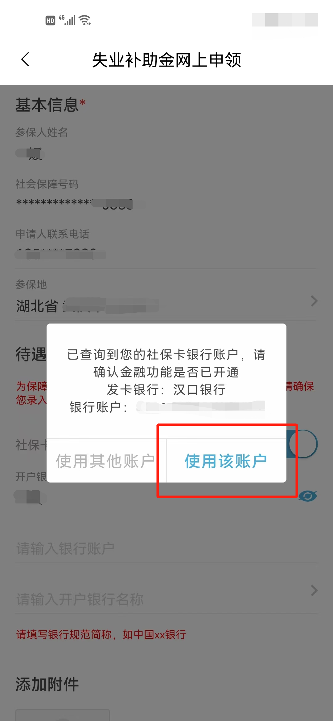 4、根据弹窗提示确认银行账户后,点击“使用该账户”,核对相关信息后“提交申请”即可。