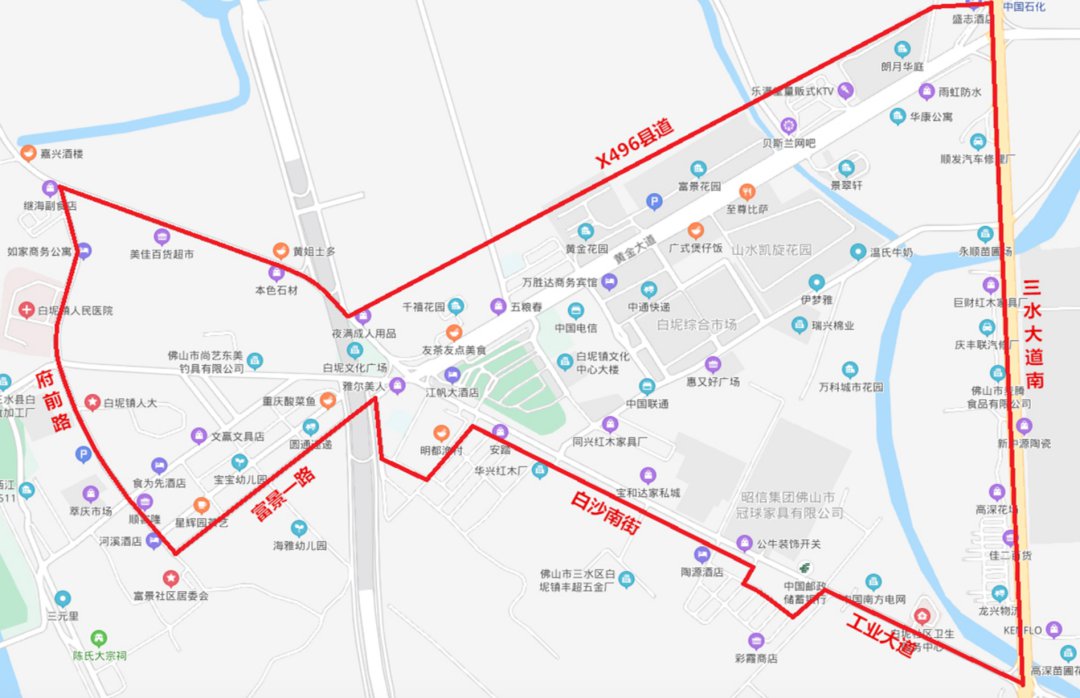 盐步片区域:北至建设西路—东至盐步大道—南至穗盐路—西至百德广场西边路。