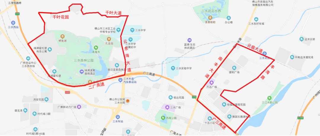 黄岐片区域:北至鄱阳路—东至岐西路—杜鹃路—宏威路—南海路—南至南湖路—西至黄海路—怡兴大道—牡丹路—东湖路。