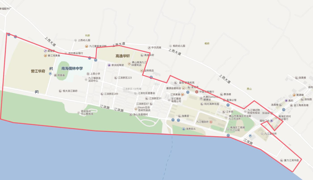 黄岐片区域:北至鄱阳路—东至岐西路—杜鹃路—宏威路—南海路—南至南湖路—西至黄海路—怡兴大道—牡丹路—东湖路。