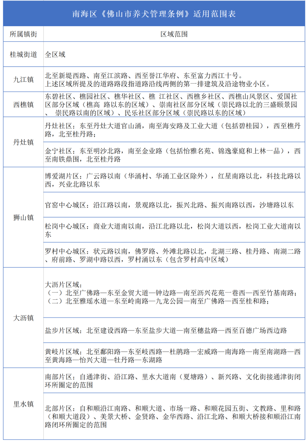 《佛山市养犬管理条例》于2020年5月正式施行( )。根据条例的有关要求,南海区日前配套公布《南海区养犬管理城市市区范围》,对区内七个镇街的多个片区养犬管理城市市区范围进行明晰划分。