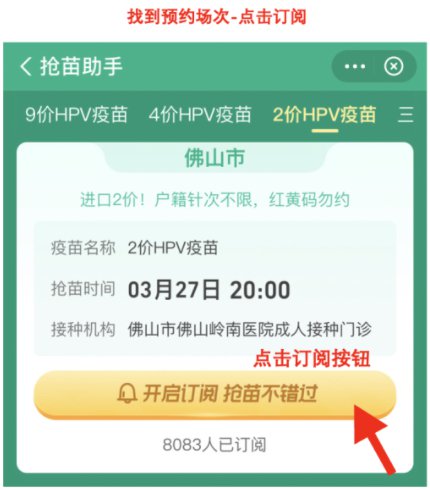 佛山岭南医院成人接种门诊20支进口二价HPV疫苗将于3月27日20:00开放线上预约,不限户籍,不限首针,黄红码勿约。