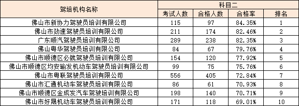 科目二合格率前十名:
