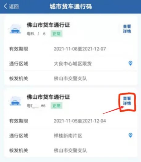 审核通过的用户点击“交管12123”APP【城市货车通行码申领】进入城市货车通行码首页,点击查看详情,可以查看已核发的货车电子通行码允许车辆通行的时段、路段或区域等具体信息,请驾驶人根据要求驾车通行。