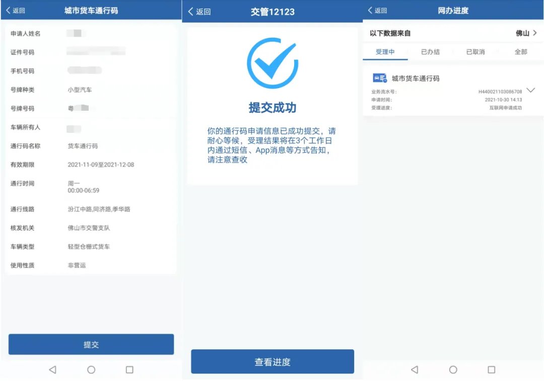 2021年11月1日起,佛山正式启用货车电子通行码。大家只需登录“交管12123”APP即可在网上快捷办理。