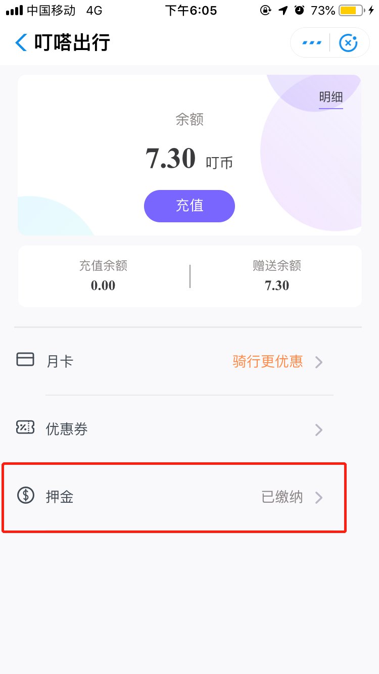 退款方式:在“叮嗒出行”APP内可提交按金退款申请。