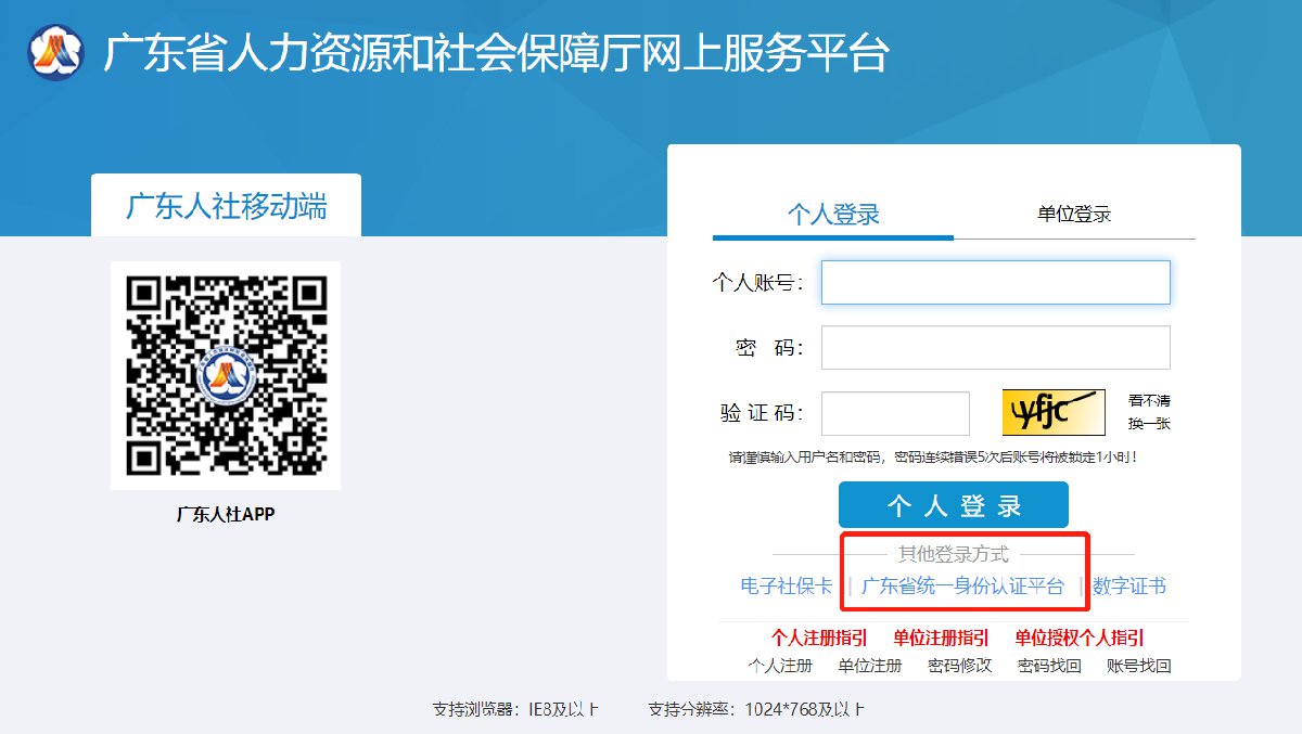办理入口:广东省人力资源和社会保障厅网上服务平台(http://hrss.gd.gov.cn/gdsbfw/)