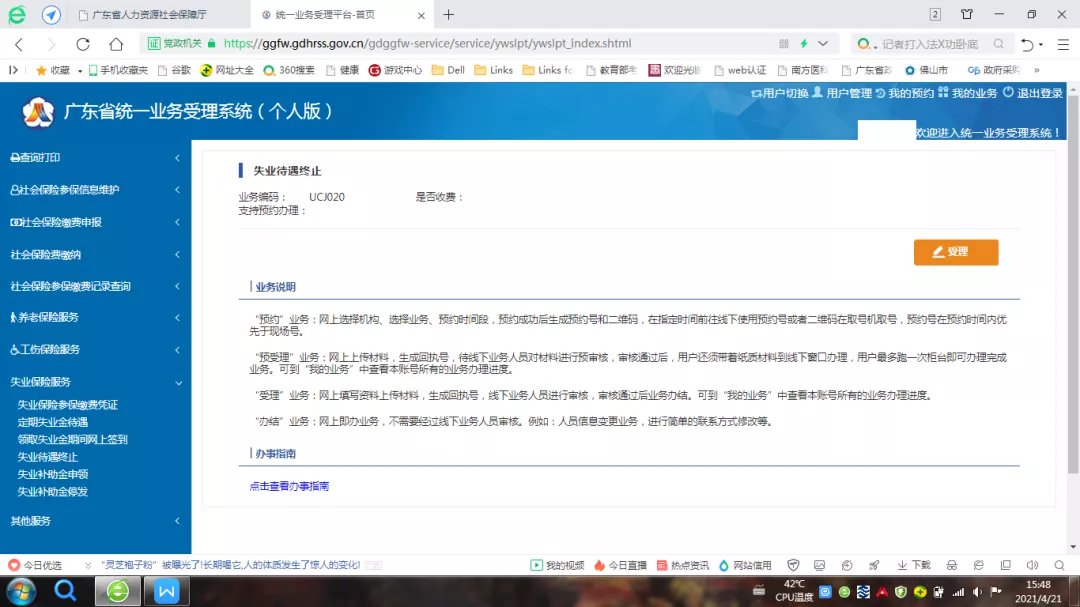 然后,点击“受理”按钮,根据页面指引填写资料和提交业务。