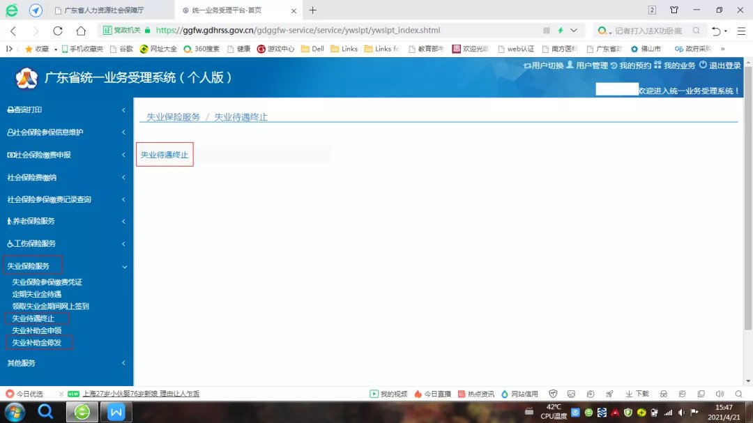 佛山失业金和补助金停领手续网上办理流程: