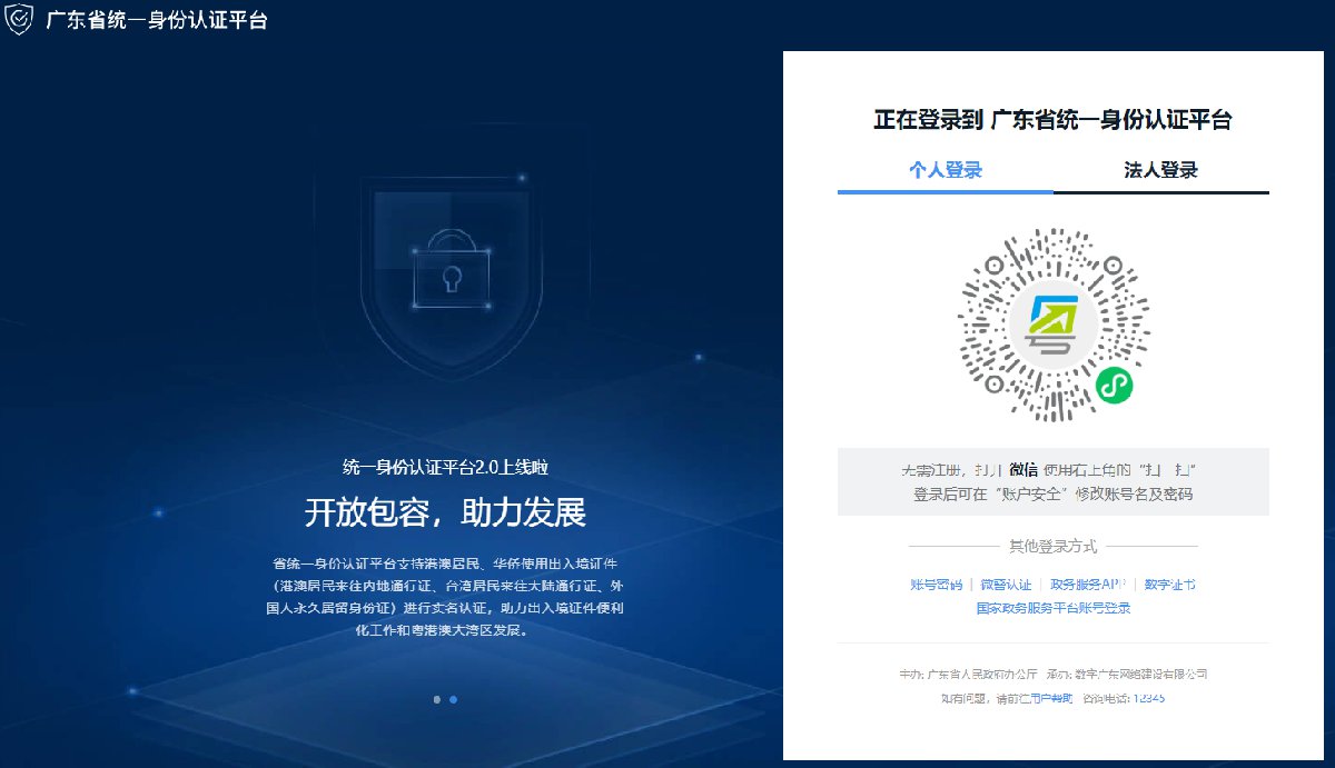 第二步:登录个人账号。未注册的用户可以在注册后再登录,或者选择其他登录方式,例如点击“广东省统一身份认证平台”。