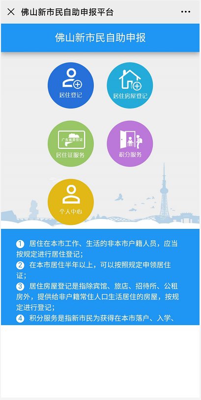 或通过手机关注“佛山新市民”微信公众号、“粤省事”微信小程序登录“自助申报”平台登记申领。