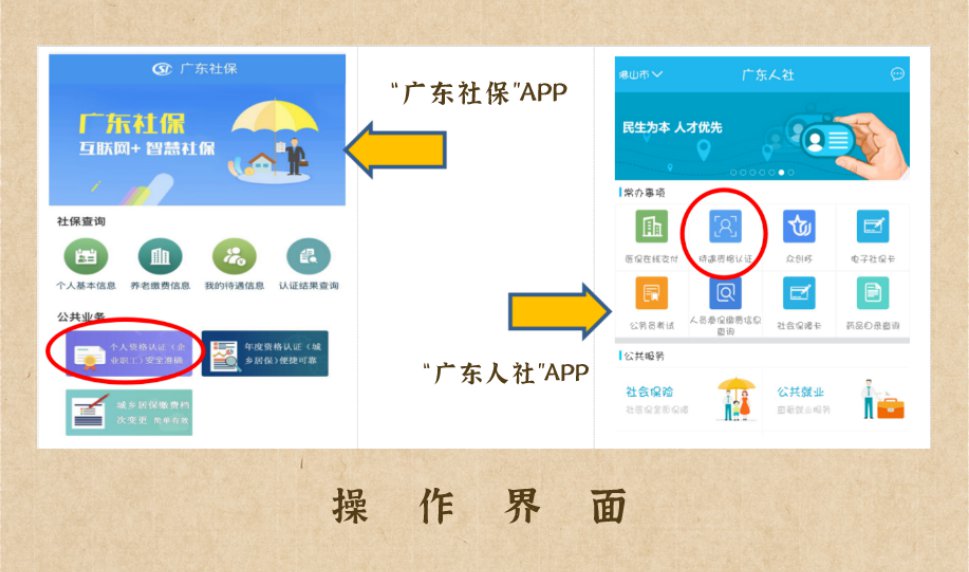 ①手机下载安装“广东社保”或“广东人社”APP认证;