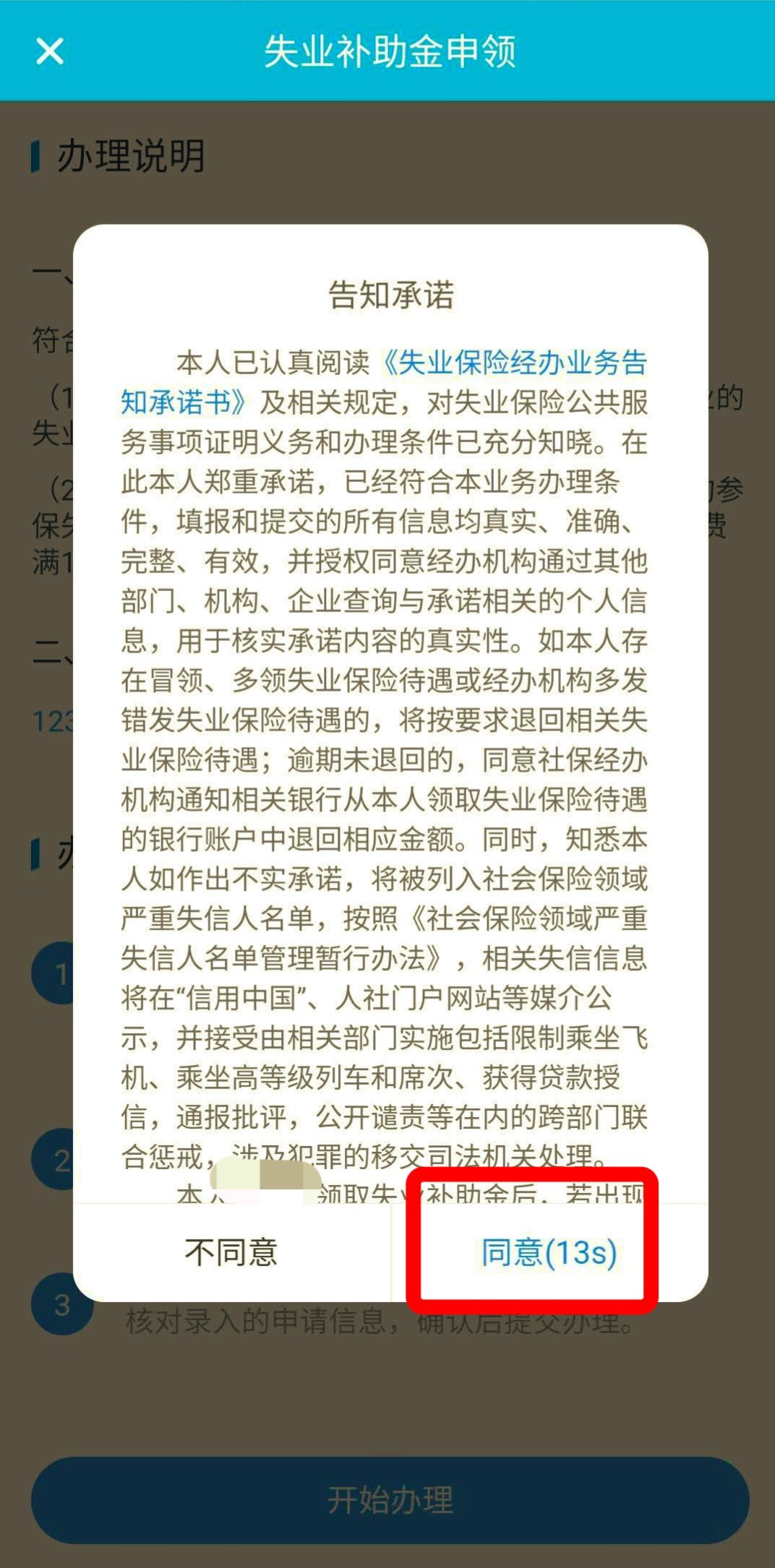 2、点击开始办理->告知承诺-同意->资格校验->填写信息->确认信息,申领完成。