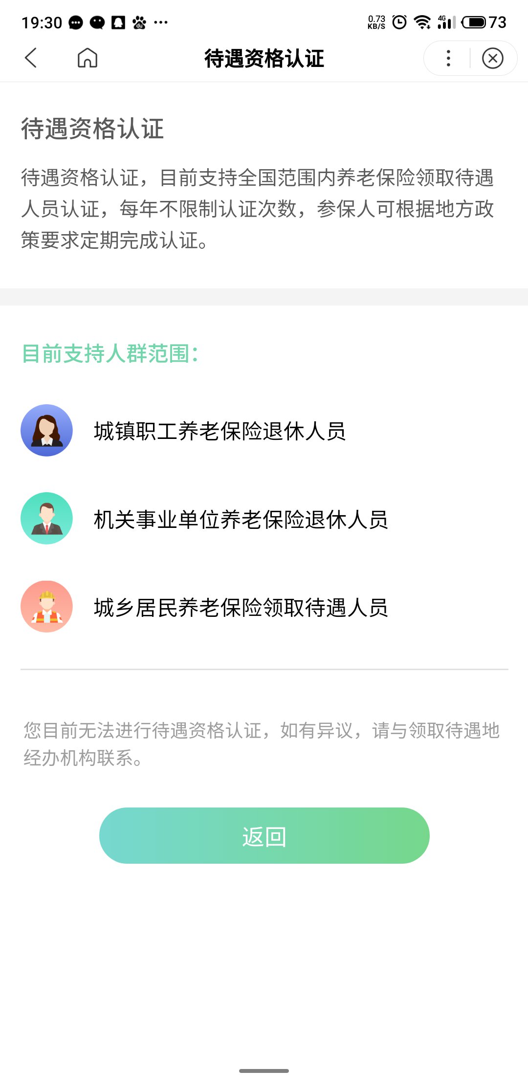 第五步:点击『城镇职工养老保险退休人员』,根据系统的提示完成认证