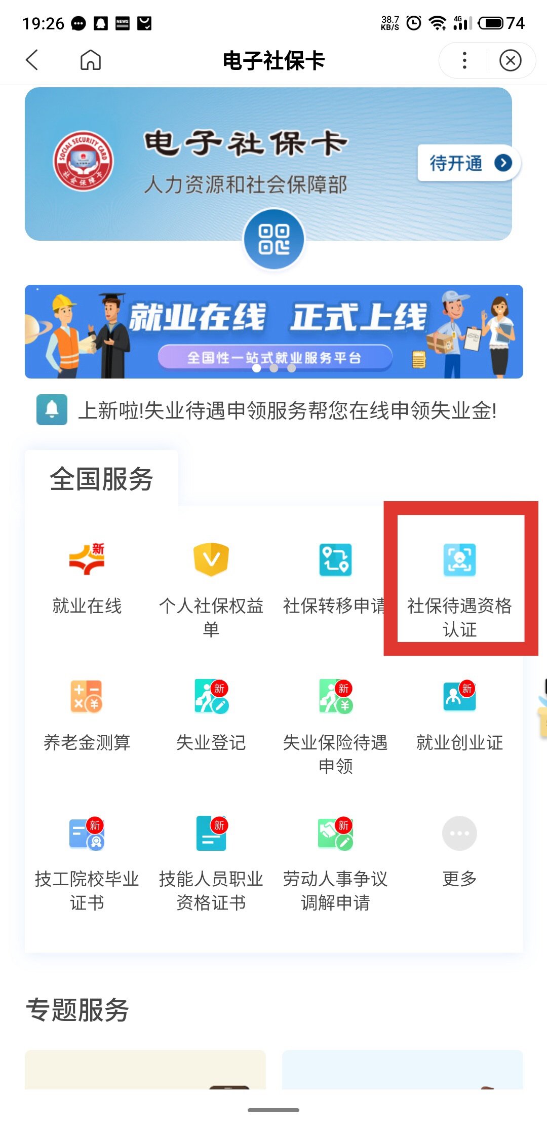 第二步:进入后点击『社保待遇资格认证』