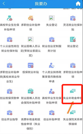 第一步:从“重庆人社”APP首页点击【我要办】,进入后点击【失业补助金申领】界面。