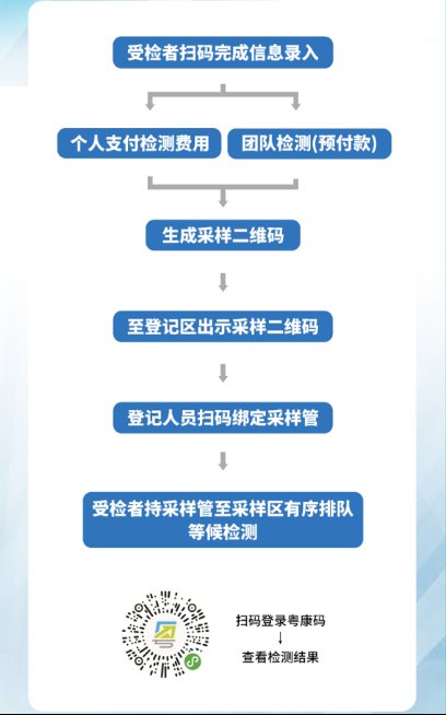 居民持有效证件在等候区领取采样管后,通过“粤核酸2”小程序,自助录入个人信息及条码信息,再到采样区进行核酸采样。