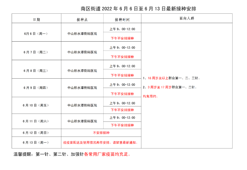 (六)接种安排如遇工作冲突或疫苗供应问题需调整的,届时以最新安排为准。