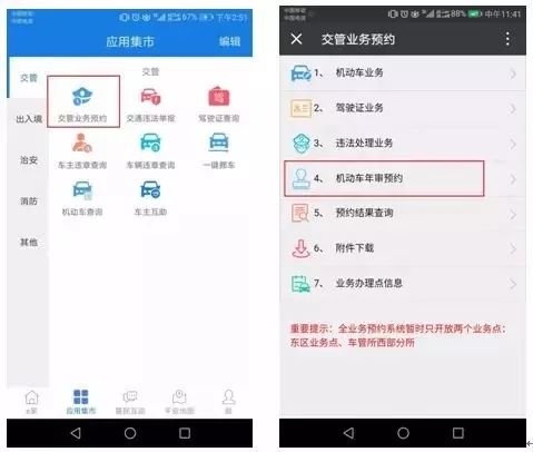 通过以上途径可预约机动车年审业务,请按照相关提示填选车辆相关信息,车主可以根据区域选择就近的检测站办理。