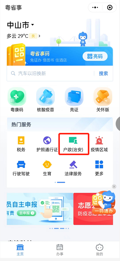 1、长按二维码进入粤省事小程序;