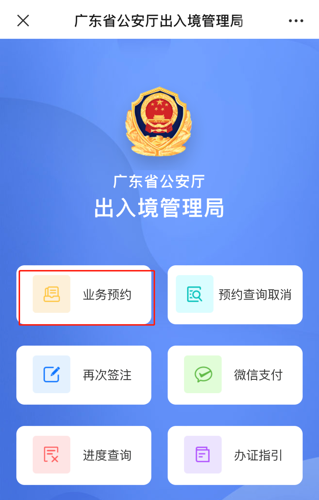 可在“广东出入境”公众号进行预约,操作步骤如下:
