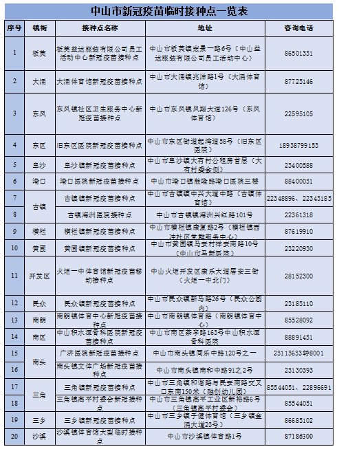 镇街如有变更相关信息,以镇街自行公布的为准。各镇街预约方式及接种时间请及时留意各镇街发布的信息。