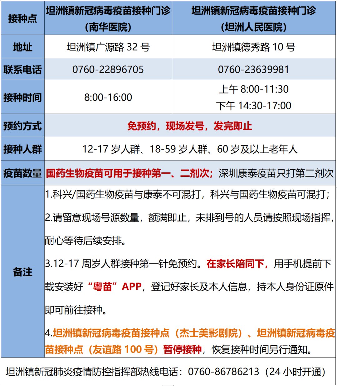 8月6日-7日,坦洲镇恢复新冠病毒疫苗接种,设置12-17岁人群专场具体安排如下