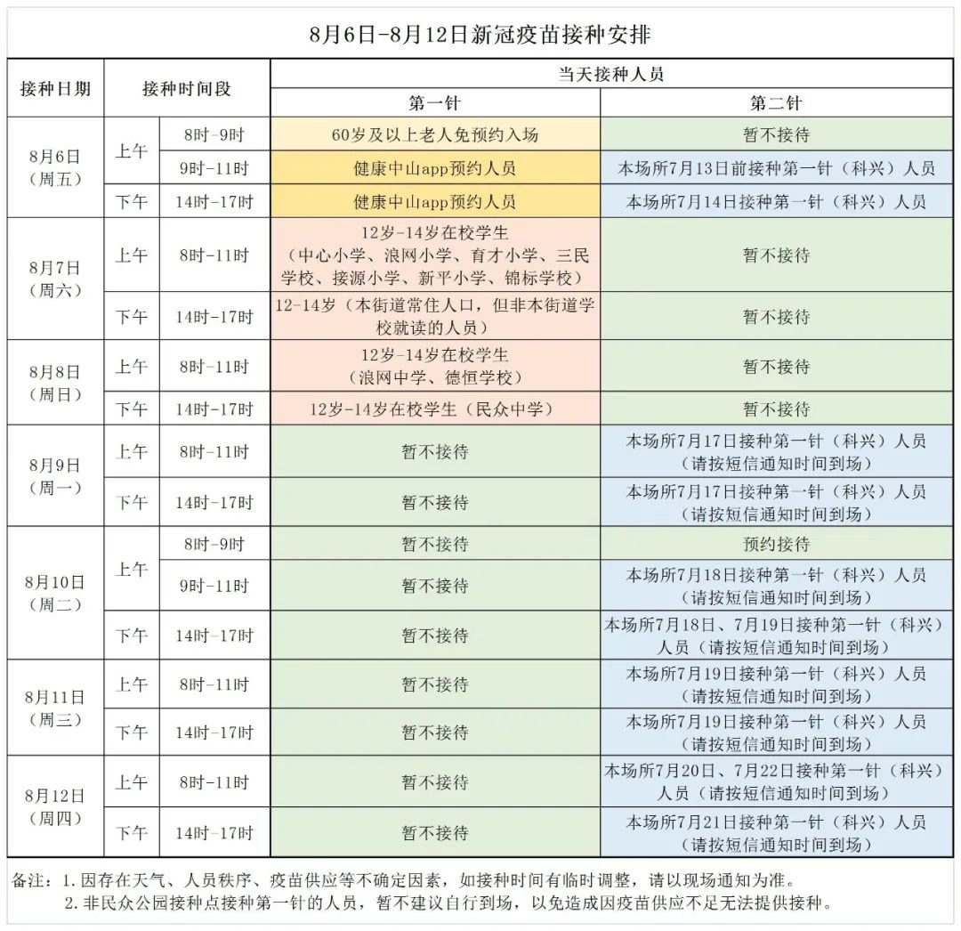 以下是过期信息,本文不再更新,详细每周接种安排,请点击阅读→