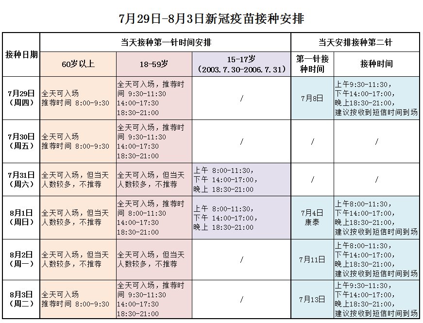 (如有特殊情况需紧急临时调整接种时间的,请以现场通知为准。)
